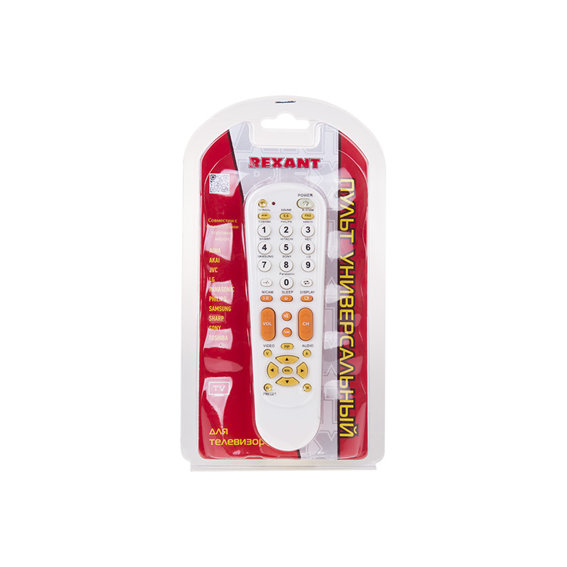 Универсальный пульт для телевизора модель RX-9513 REXANT отличается простотой в использовании и совместим с большинством марок и моделей современных телевизоров, таких как: TOSHIBA, PHILIPS, SANYO, SHARP, HITACHI, NEC, SAMSUNG, SONY, LG, PANASONIC.Универсальный пульт поддерживает такие функции, как: меню, настройки, стандартные настройки, субтитры, канал, громкость, язык и т. д., что обеспечивает максимально полное и удобное управление телевизором.Имеет низкое энергопотребление, удобен и прост в настройке.