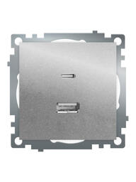 Розетка 2-местная USB + type C (механизм)), STEKKER GLS10-7116-03 , 250B, 3А, max 20W, серия Катрин, серебро 50054