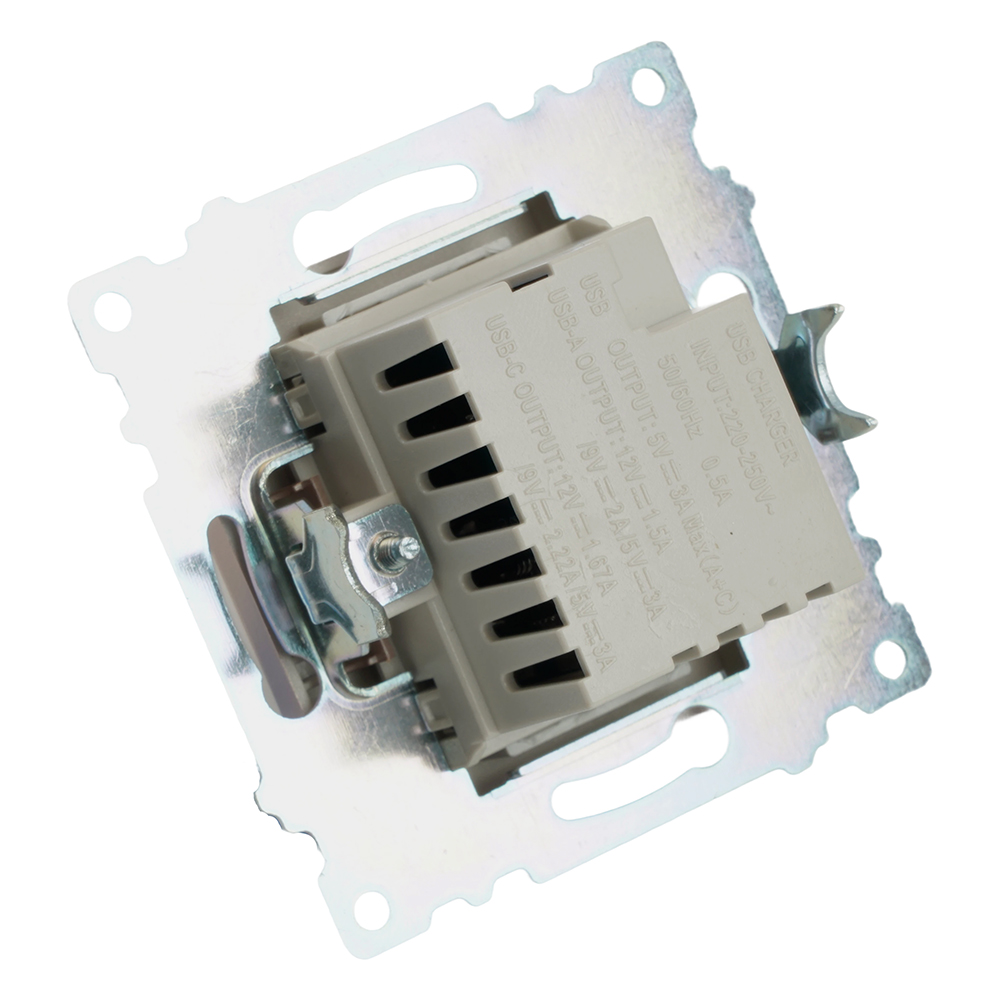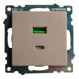 Розетка 2-местная USB + type C (механизм), STEKKER GLS10-7116-02, 250B, 3A, max 20W, серия Катрин, шампань 50056