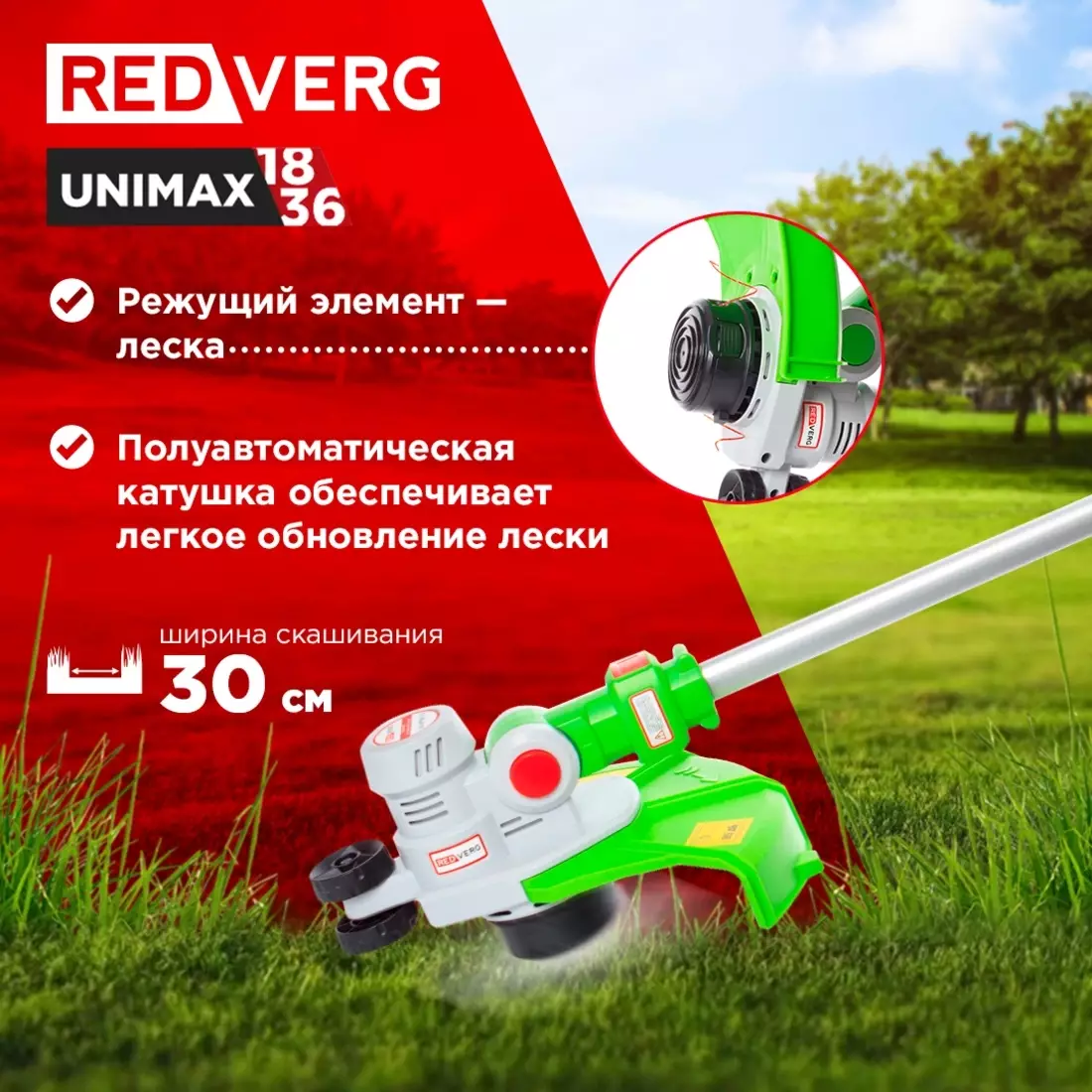 • Диаметр круга стрижки 30 см