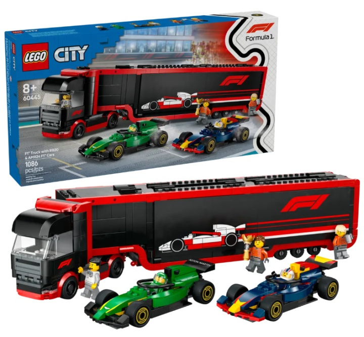 Конструктор LEGO City 60445: Грузовик F1 с автомобилями RB20 и AMR 24 F1
