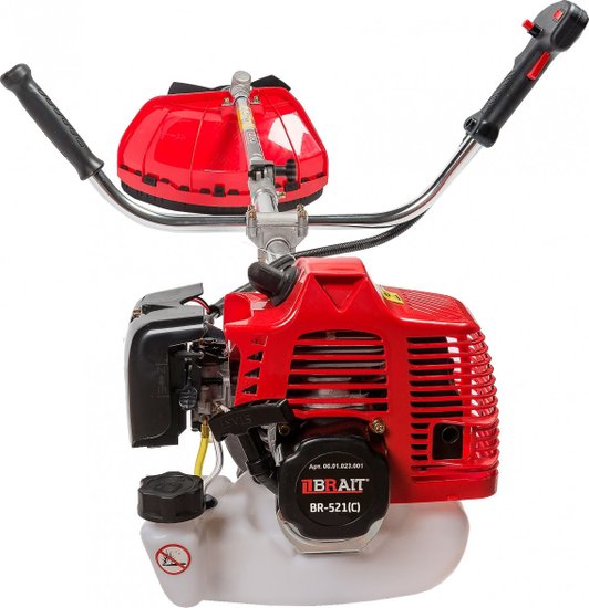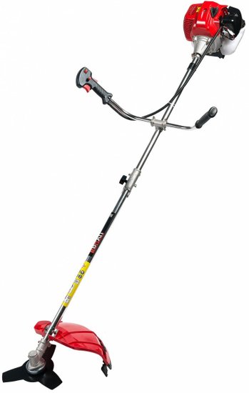 - Комплектация - триммерная головка, - плечевой ремень, - защитный кожух, - набор инструментов, - металлический нож, - емкость для топливной смеси.