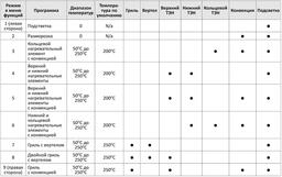 Режимы духовкиПодсветка, Разморозка, Кольцевой нагревательный элемент с конвекцией, Верхний и нижний нагревательный элементы, Верхний и нижний нагревательный элементы с конвекцией, Нижний и кольцевой нагревательный элемент с конвекцией, Гриль с вертелом, Двойной гриль с вертелом, Гриль с конвекцией