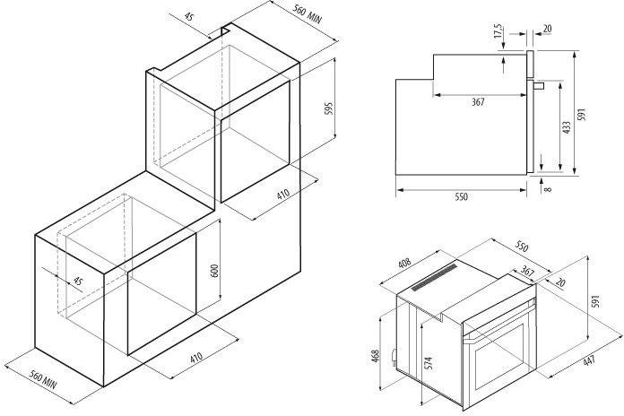 • Размеры для встраивания 41x56x60см