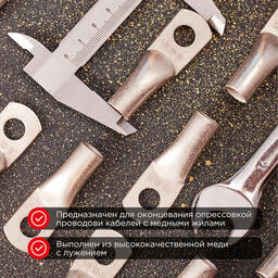 Наконечник ТМЛ 50–10–11 (50мм² - Ø10мм) REXANT предназначен для оконцевания проводов и кабелей с медными и алюминиевыми жилами посредством опрессовки для последующего болтового соединения проводника с оборудованием или шиной.