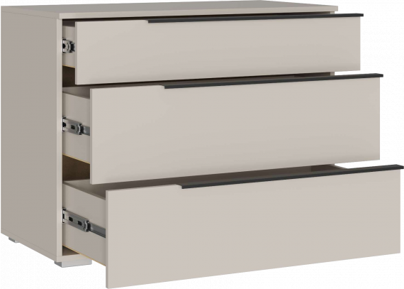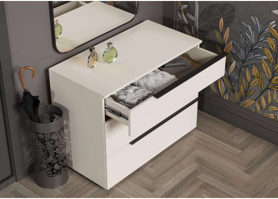 Три вместительных ящика: Комод оснащен тремя ящиками разной высоты, что позволяет удобно разместить одежду, белье и другие предметы.