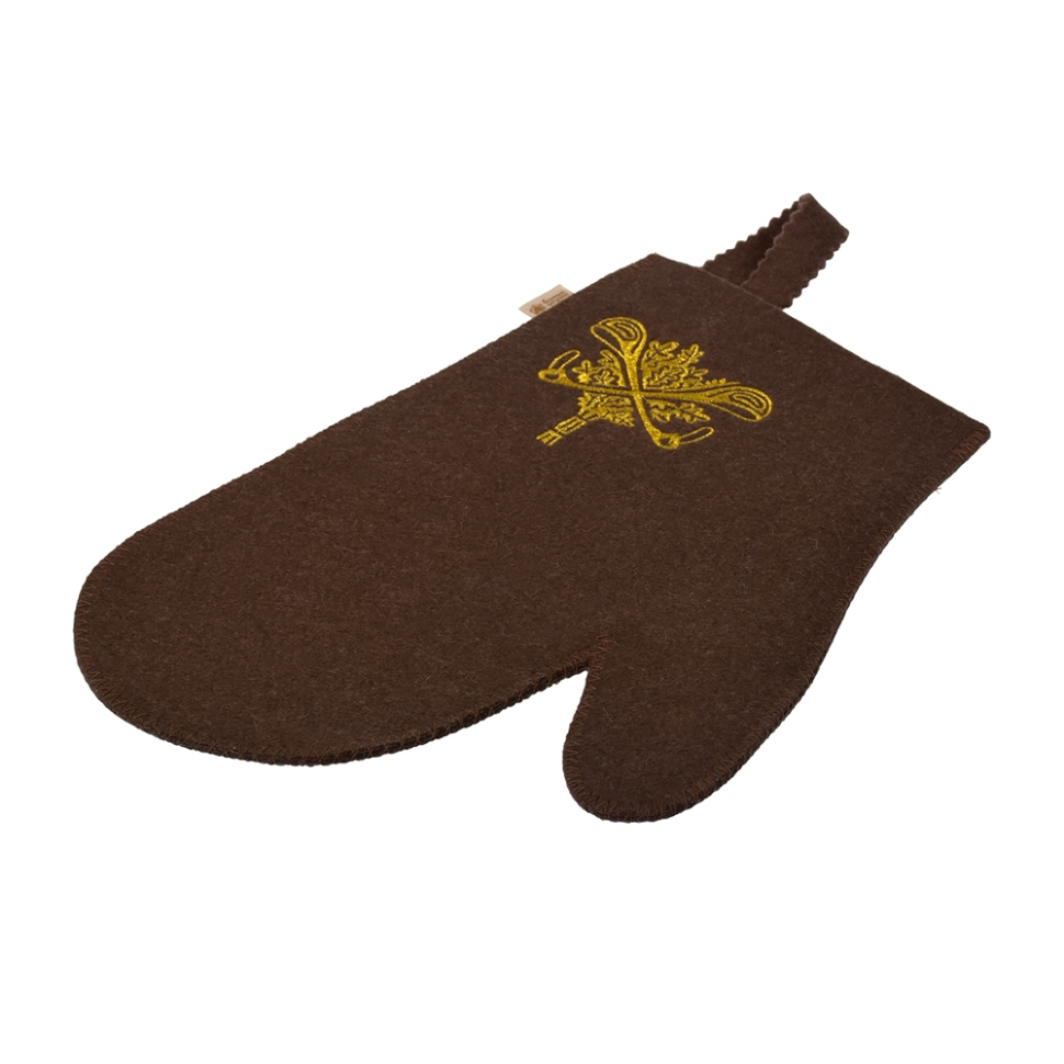 Нарушена упаковка! <296553> Рукавица коричневая с вышитым логотипом "Банные Штучки", войлок 100% 296553