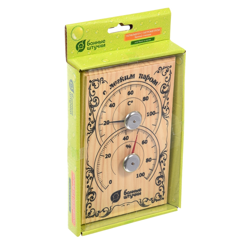 Заводская упаковка нарушена или отсутствует. Товар НОВЫЙ, в полной комплектации. / Размер: 18х12х2,5 см. Контролировать температуру и влажность воздуха в бане и сауне позволят специальные термометры и гигрометры. Мы предлагаем различные модели банных термометров и гигрометров. Каждая модель надежна, сделана из натурального материала - безопасного для здоровья человека, имеет креативное решение, которое добавит индивидуальности именно вашей бане. Русский человек любит ходить в баню, а особенно - париться. Однако полезно иметь измеритель, который позволяет следить за температурой и влажностью воздуха в парилке.