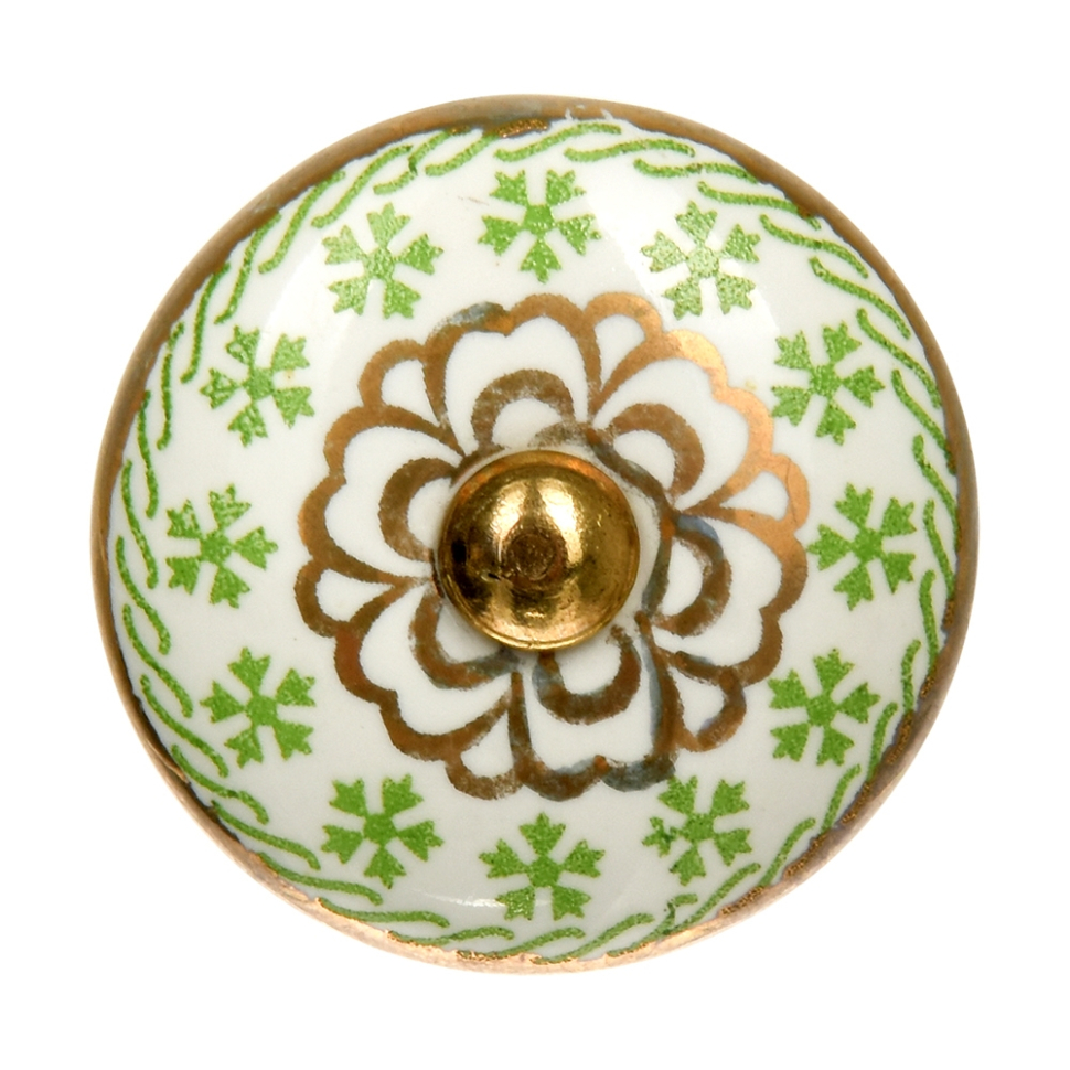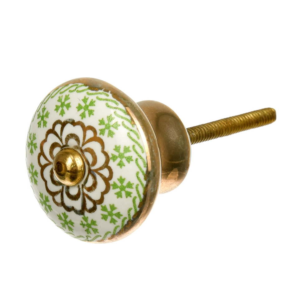 Нарушена упаковка! <303148> 66103 BLUMEN HAUS Ручка металлическая для мебели ''Зеленый чай'', цвет зеленый, рисунок золотой /300/6