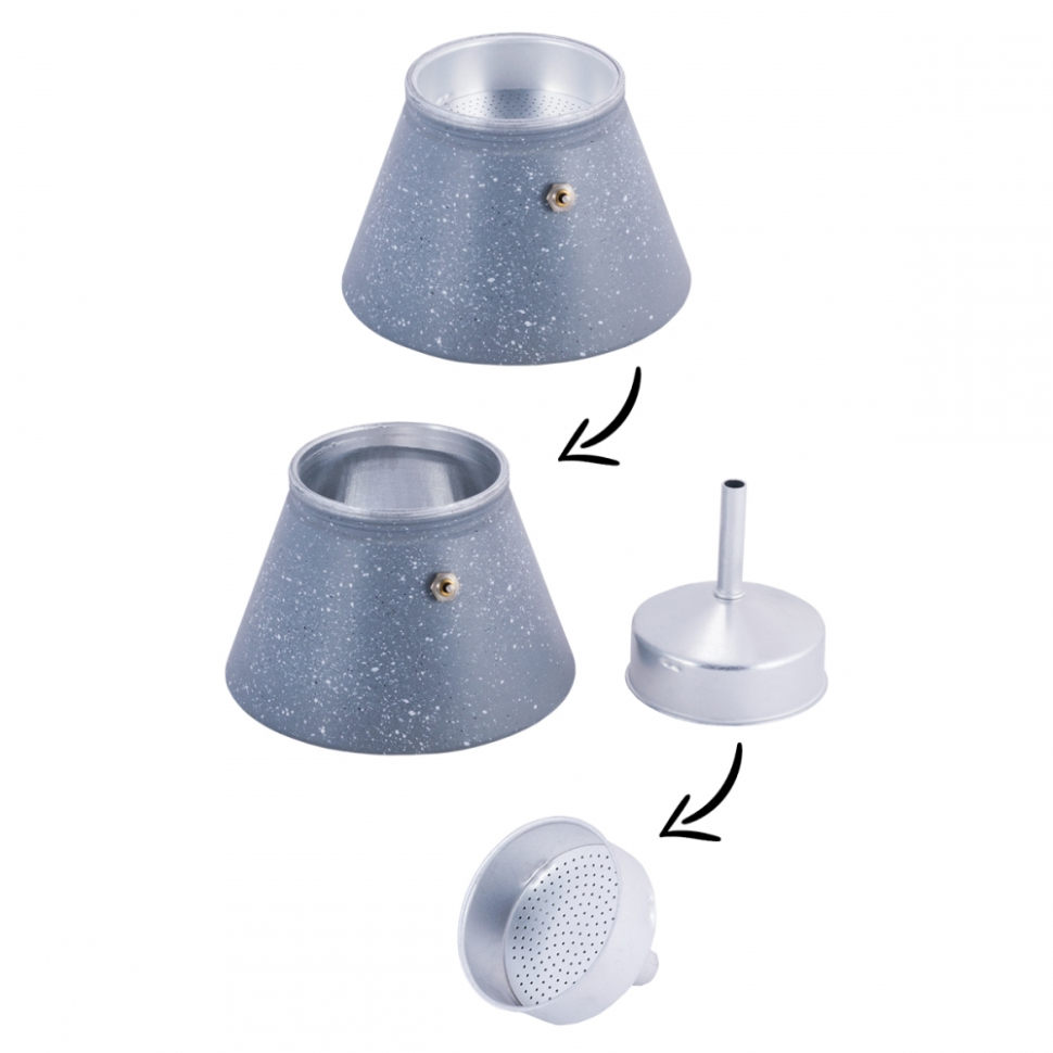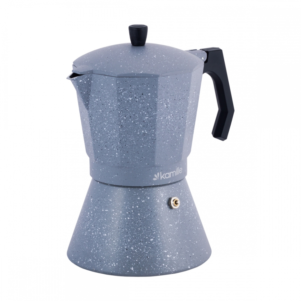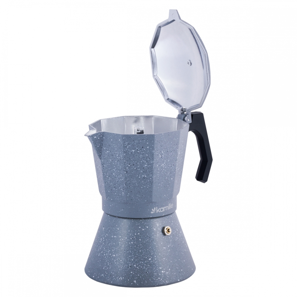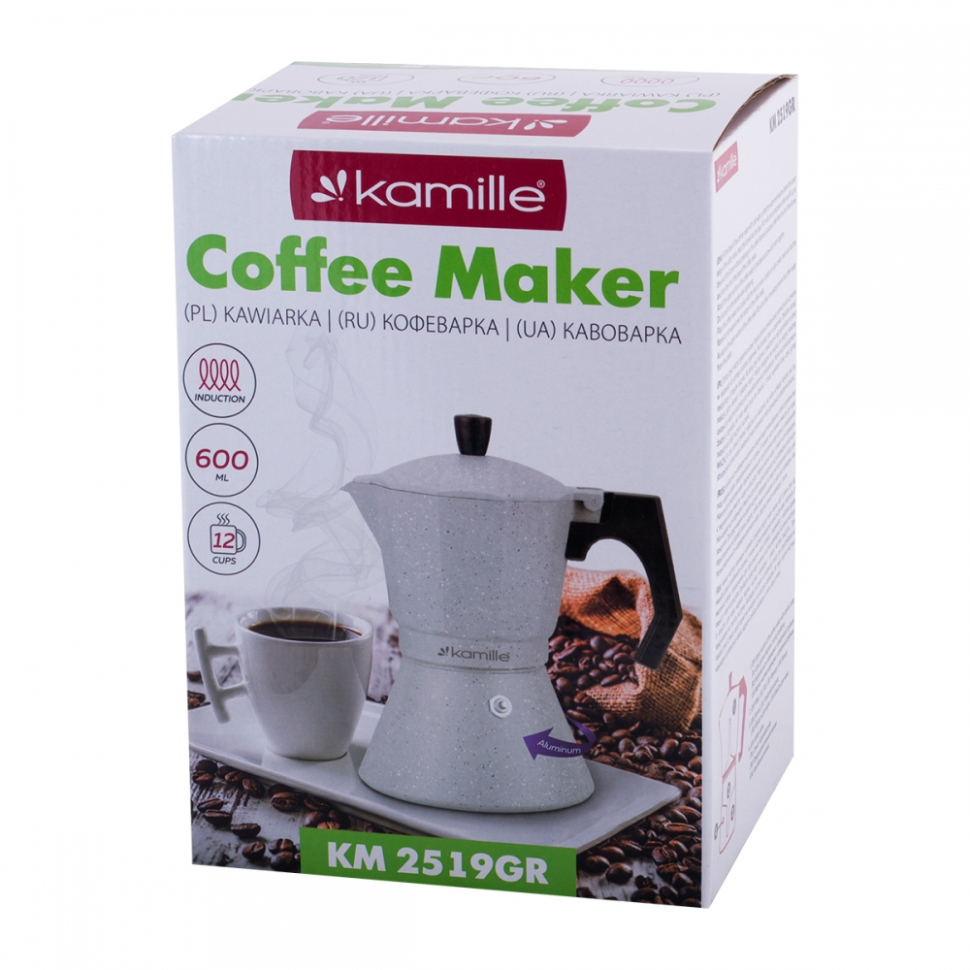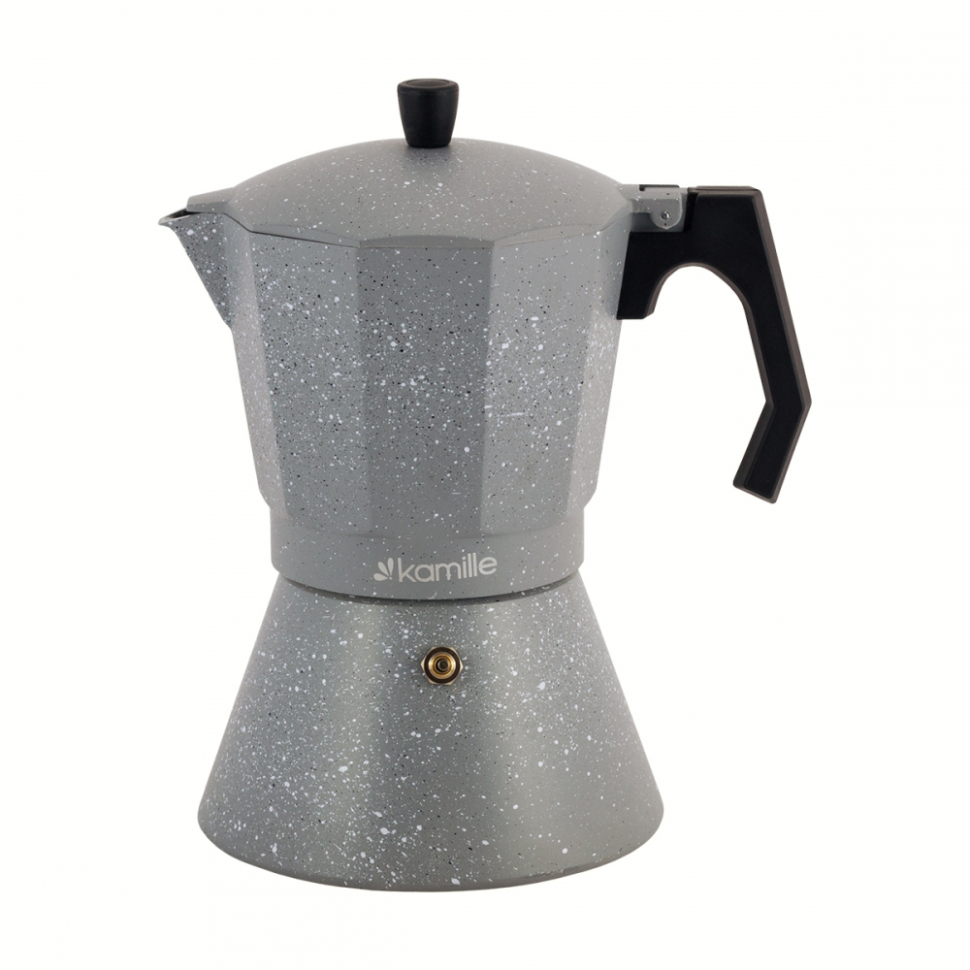 Нарушена упаковка! <309356> Кофеварка гейзерная 600мл (12 порций) из алюминия с широким индукционным дном (серый мрамор) Kamille 2519GR