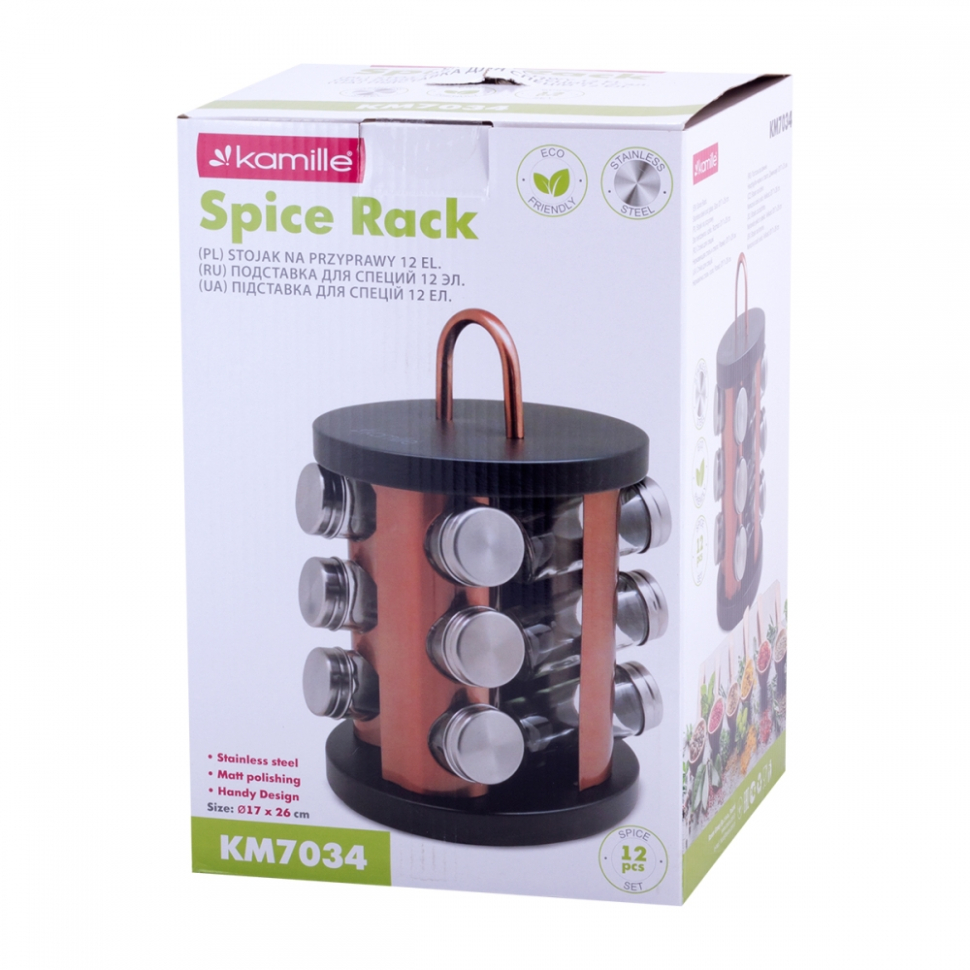 Нарушена упаковка! <309483> Набор ёмкостей для специй на круглой подставке Kamille 7034
