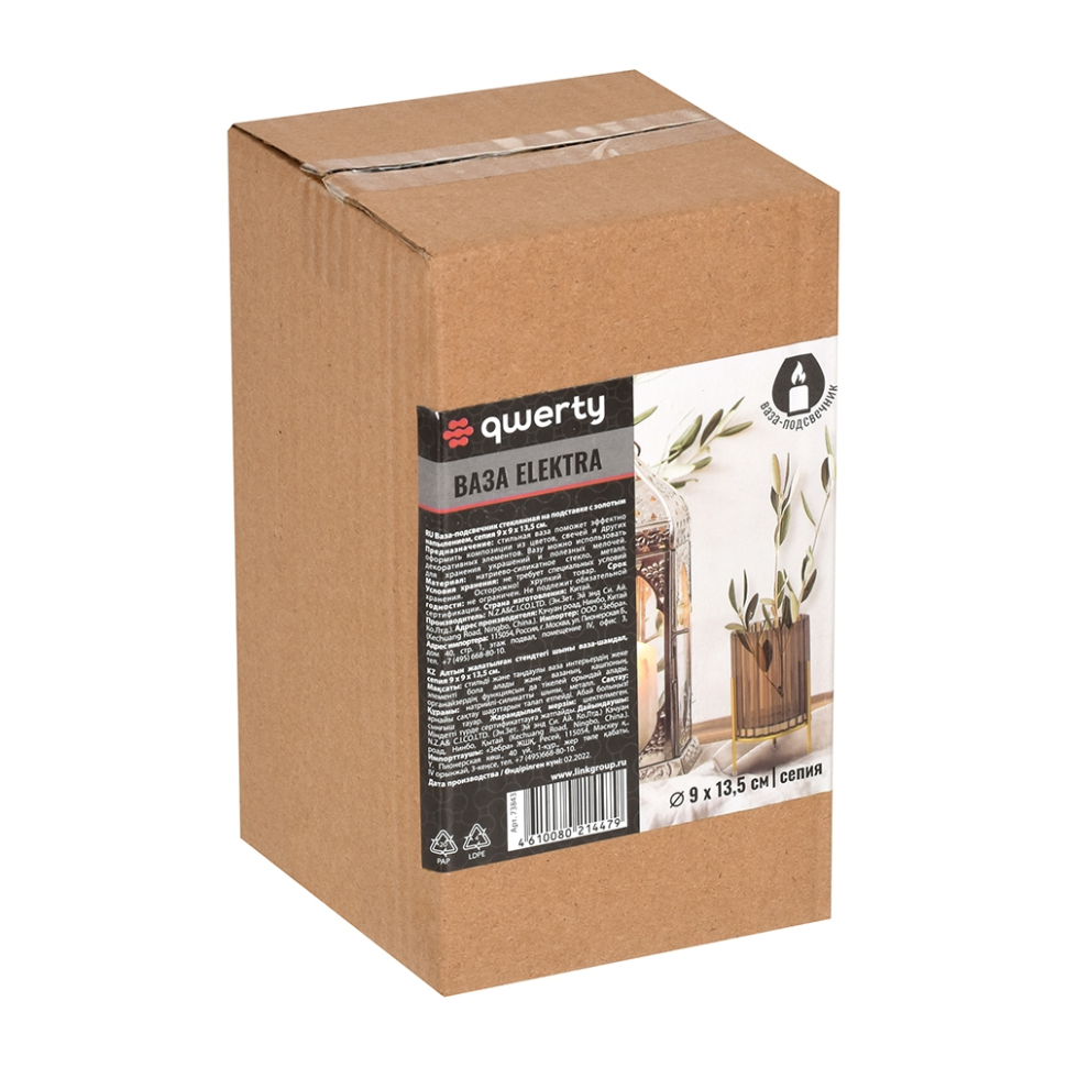 Нарушена упаковка! <387846> Ваза-подсвечник стеклянная "Elektra", на матовой подставке, 9*13,5 см, сепия Qwerty 73843