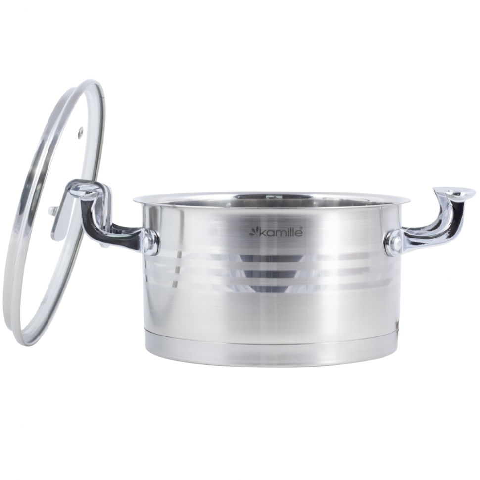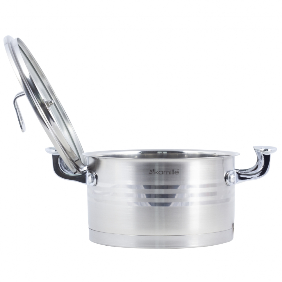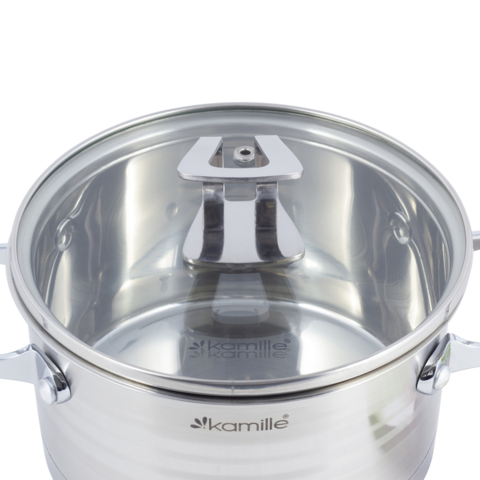 Нарушена упаковка! <398752> Кастрюля 22*12см, 4,4L из нержавеющей стали с крышкой Kamille 5856