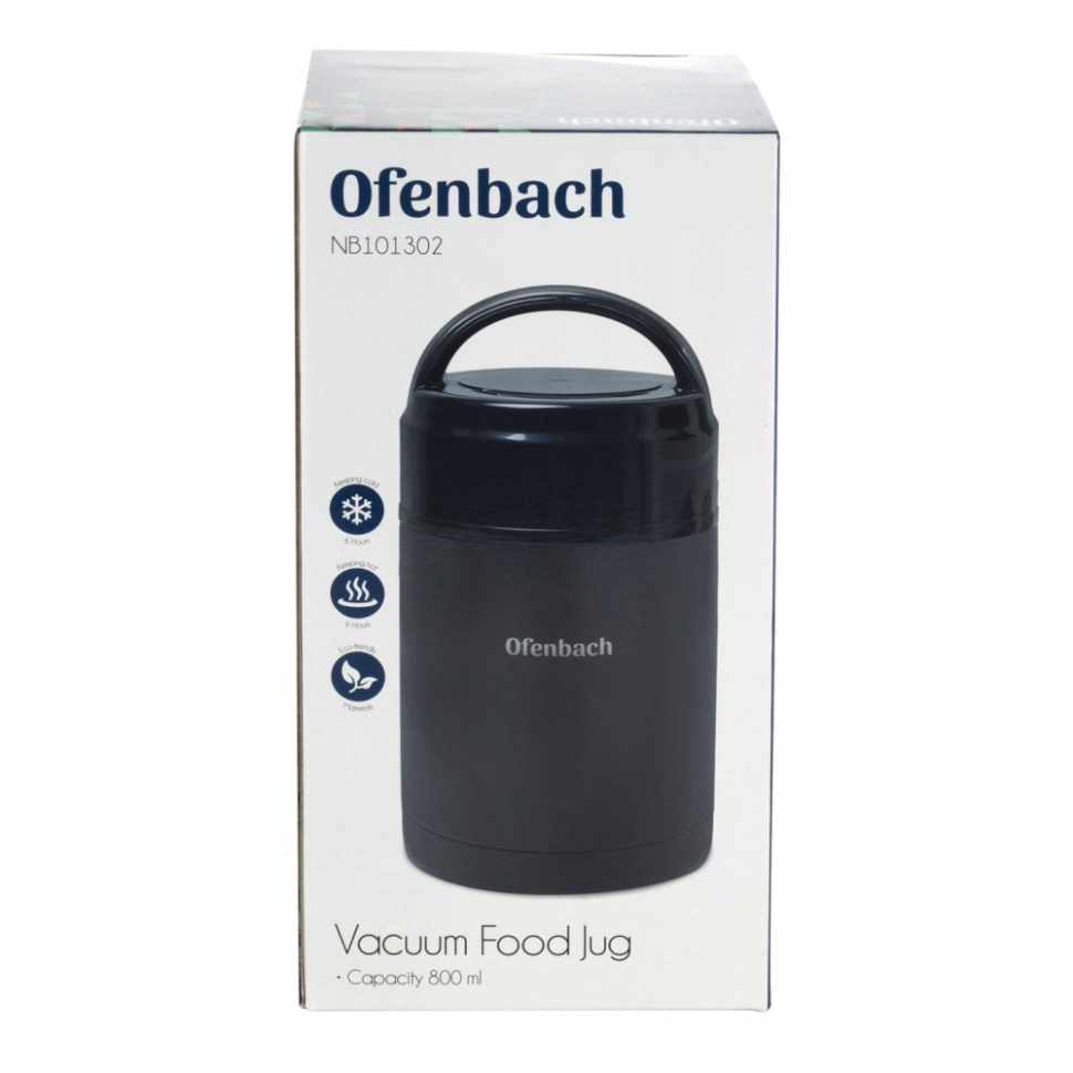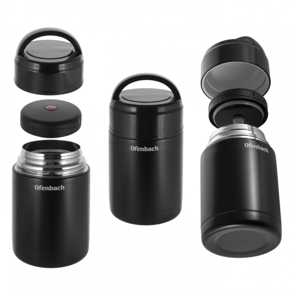 Нарушена упаковка! <398906> Термос пищевой 800мл (Ø11.1*23см) из нержавеющей стали с пластиковой крышкой OFENBACH 101302