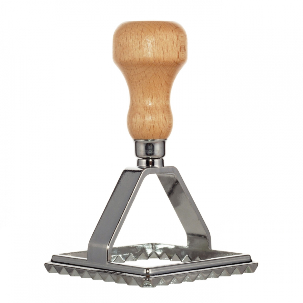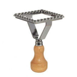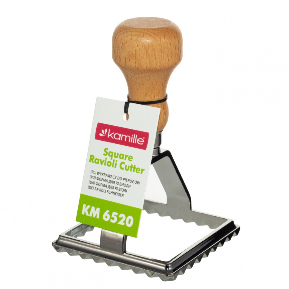 Заводская упаковка нарушена или отсутствует. Товар НОВЫЙ, в полной комплектации. / Форма для равиоли, печенья и различных мучных изделий. Материал рабочей части: анодированный алюминий. Материал рукоятки: дерево. Форма штампа: зубчатый (зигзагообразный) квадрат. Размер штампа: 7х7 см. Мини-упаковка: 6 шт. Ящик: 96 шт.