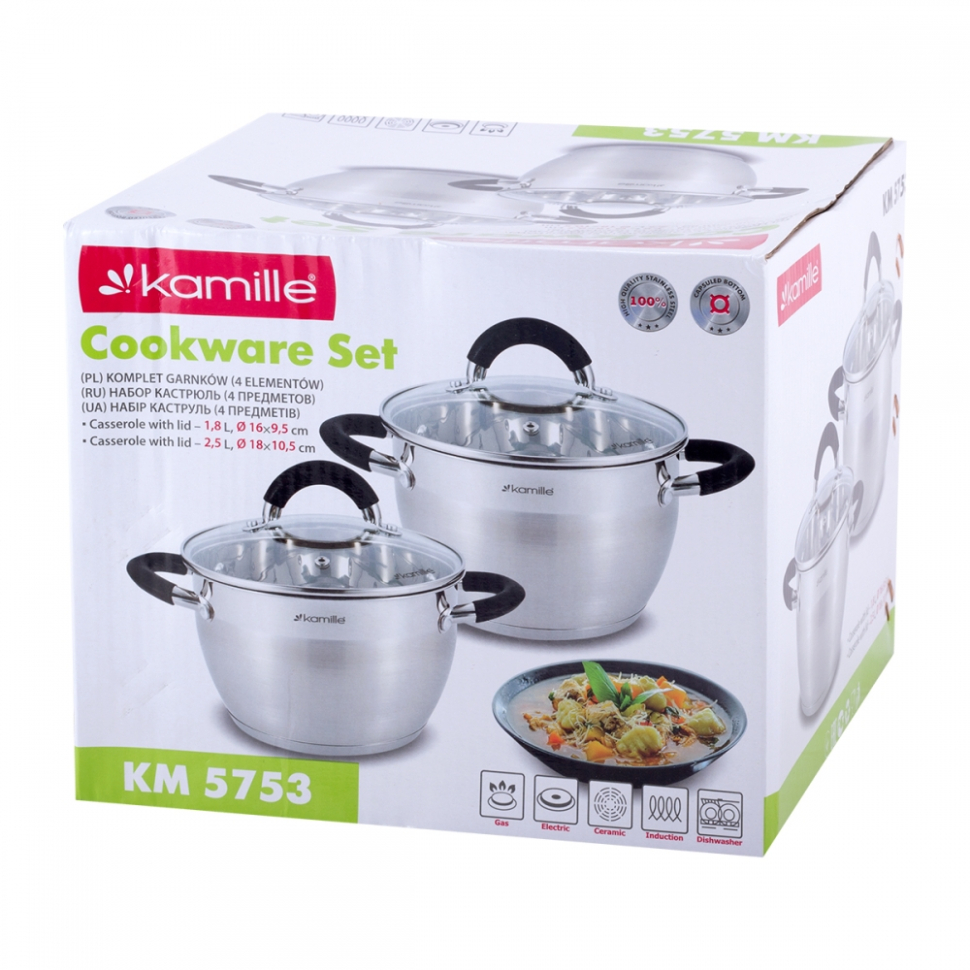 Нарушена упаковка! <309536> Набор кастрюль 4 предмета (1.8л, 2.5л) из нержавеющей стали Kamille 5753