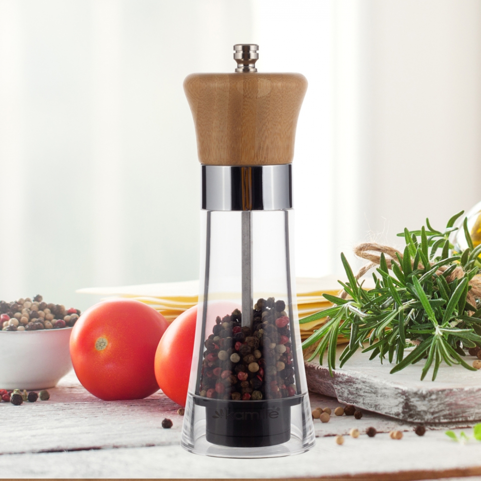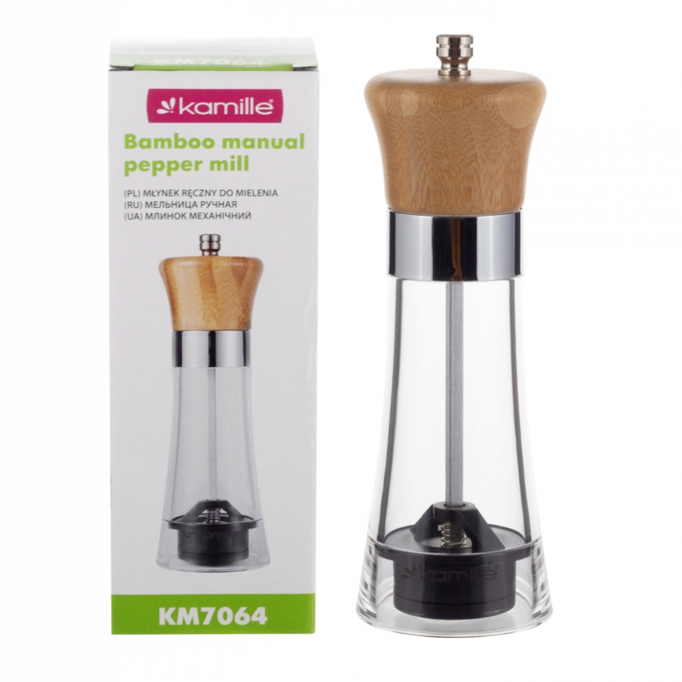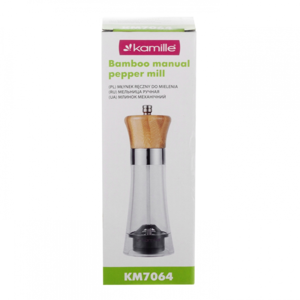 Нарушена упаковка! <678616> Бамбуковая ручная мельница для перца Kamille 7064