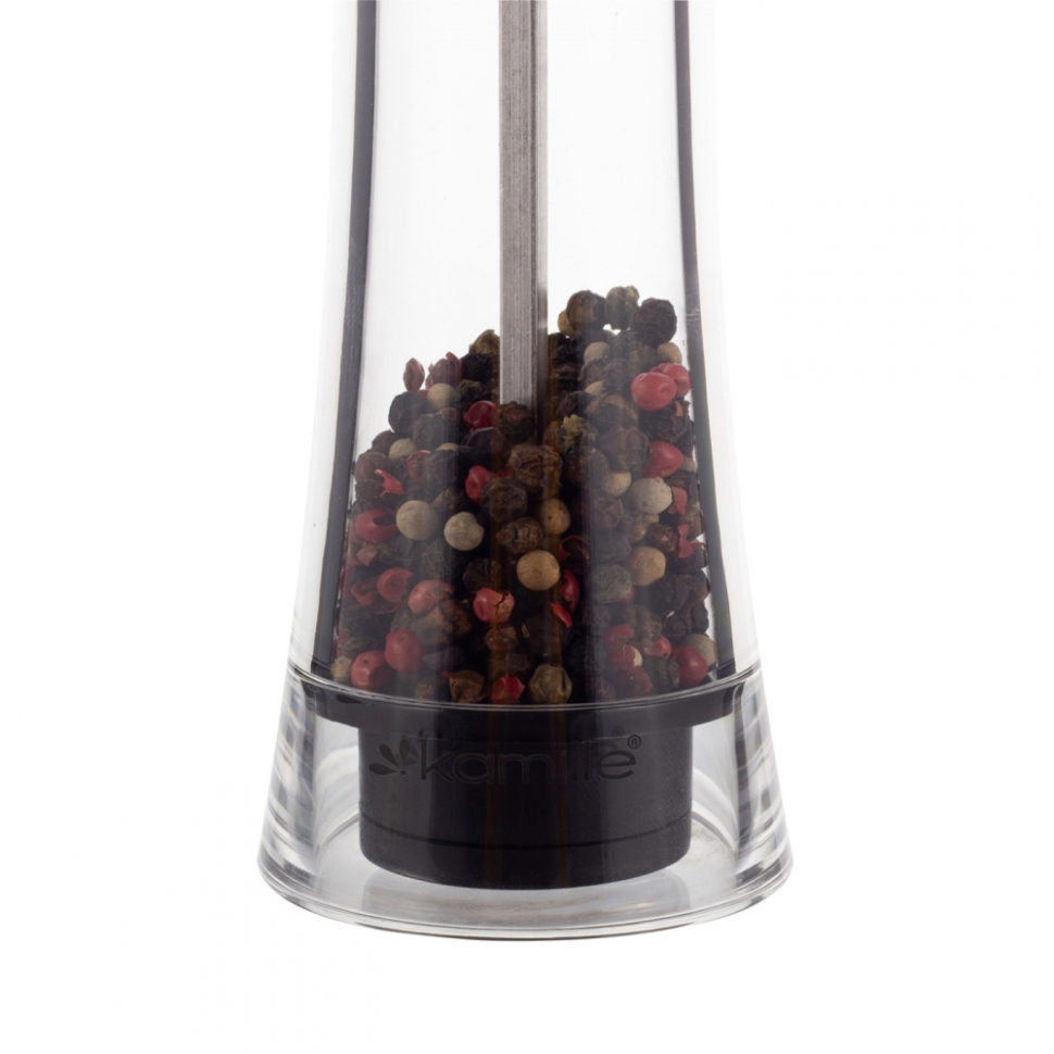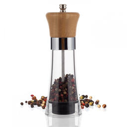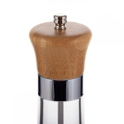 Заводская упаковка нарушена или отсутствует. Товар НОВЫЙ, в полной комплектации. / Изготовлен из высококачественной нержавеющей стали, бамбука и стекла. Имеет керамический механизм помола и регулировку тонкости помола. Диаметр: 6,2 см. Рост: 18,1 см.