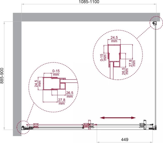 • Монтаж в угол (к двум стенам)