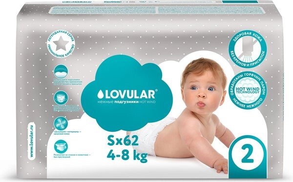 Подгузники детские Lovular Hot Wind S 4-8кг / 429719