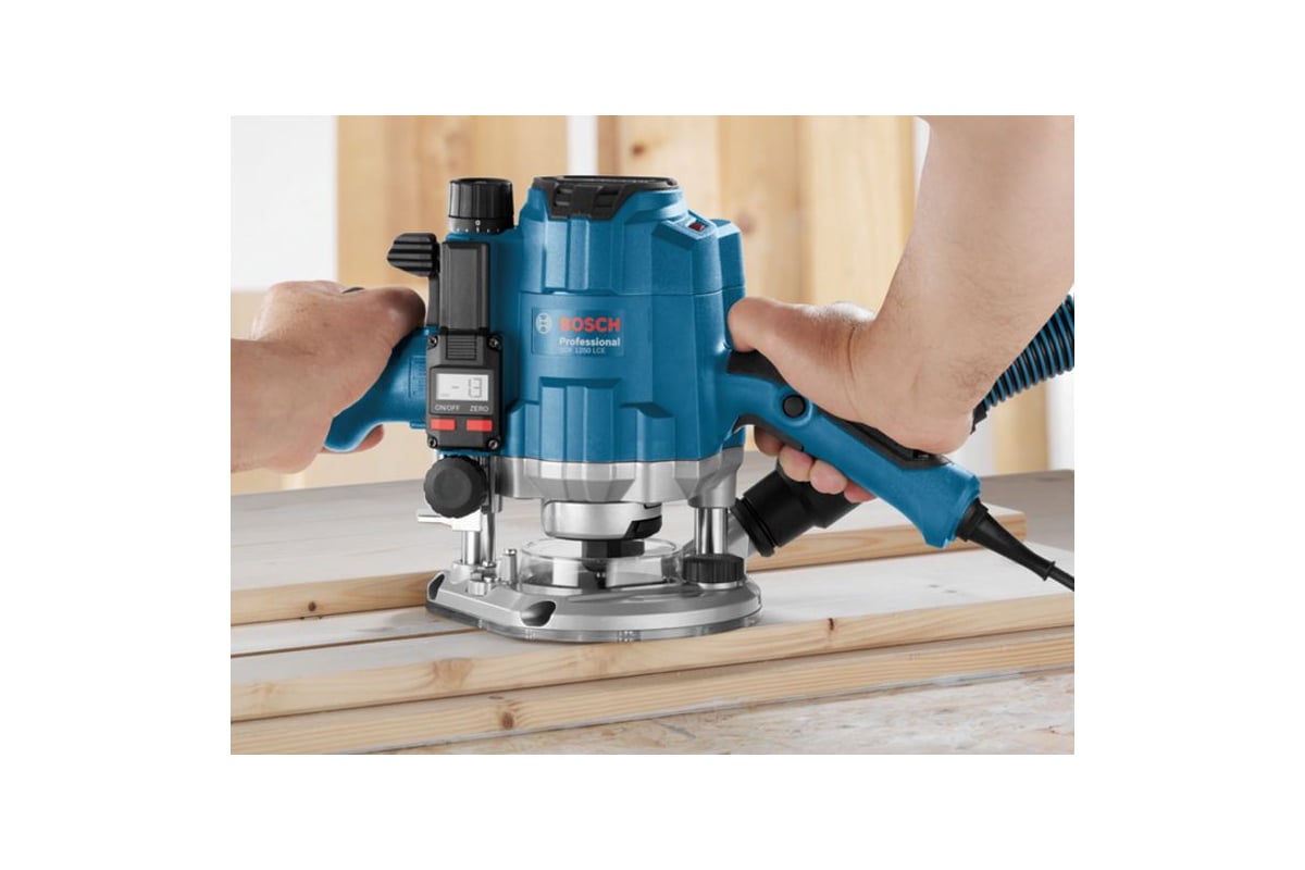 Фрезер Bosch GOF 1250 LCE 0.601.626.101 оснащен мощным двигателем на 1250 Вт. Инновационная запатентованная функция блокировки шпинделя позволяет быстро и легко менять фрезы. Прозрачная опорная пластина с инновационной технологией обеспечивает оптимальный обзор заготовки. С помощью колесика можно отрегулировать скорость вращения фрезы в диапазоне от 10000 до 24000 оборотов в минуту.