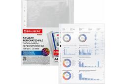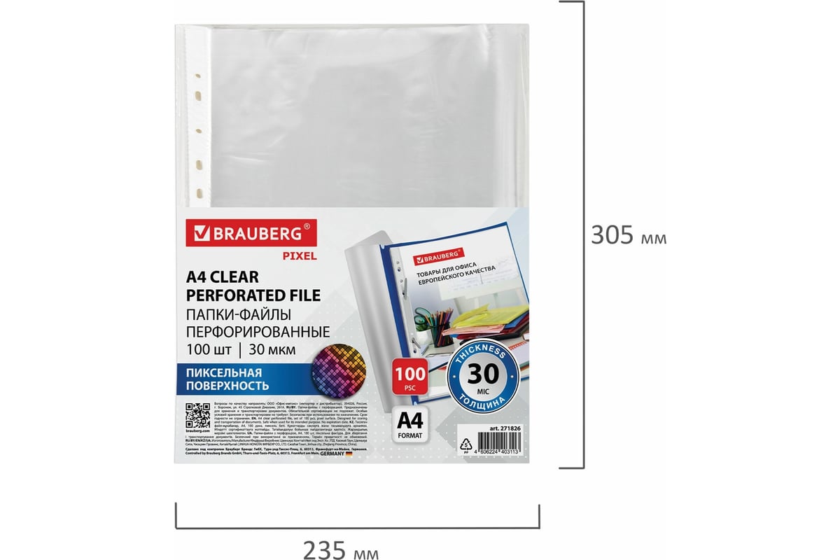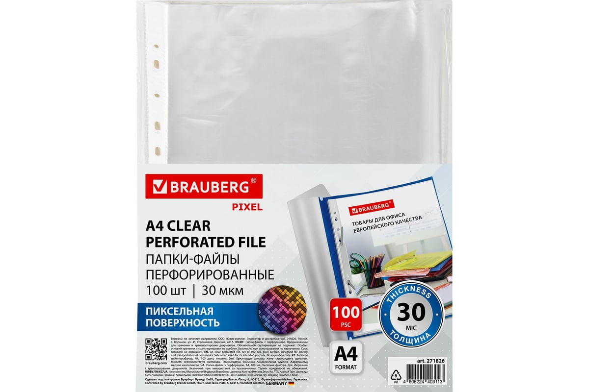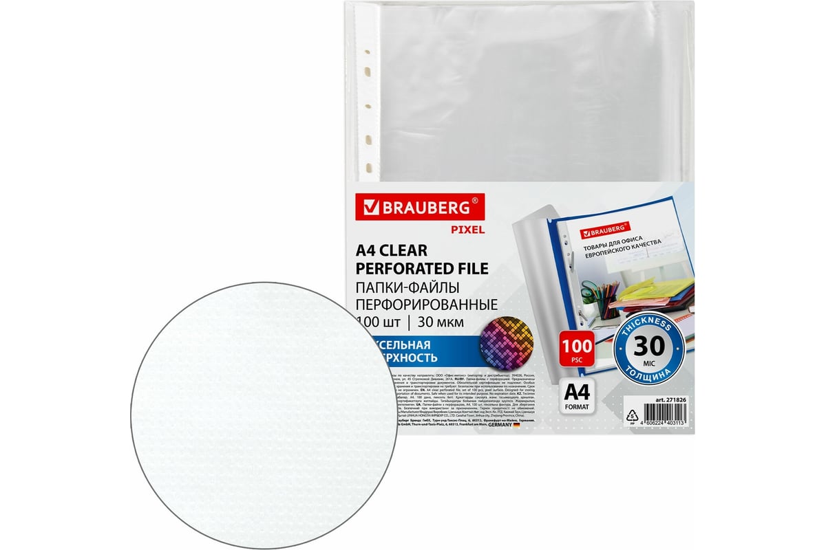 Перфорированные папки-файлы BRAUBERG PIXEL с антибликовой текстурой, А4 , комплект 100 шт., 30 мкм 271826