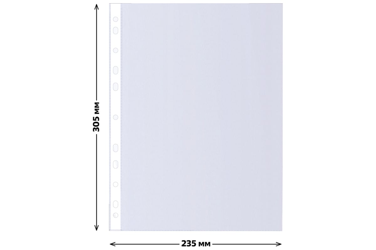 Папка вмещает до 50 листов. Перфорация на боковой части позволяет разместить изделие в папке с любым кольцевым механизмом или скоросшивателе. В упаковке 100 штук.