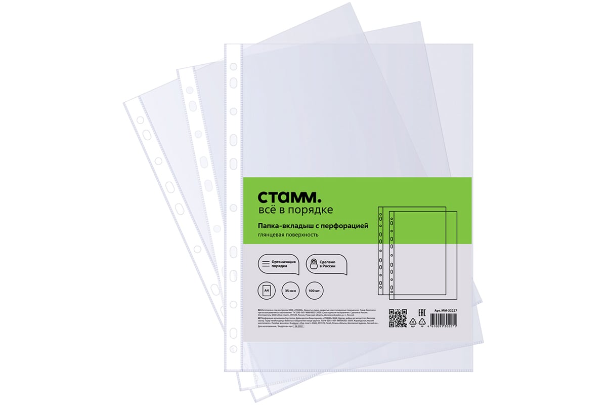 Папка-вкладыш с перфорацией СТАММ А4, 35 мкм, глянцевая ММ-32227