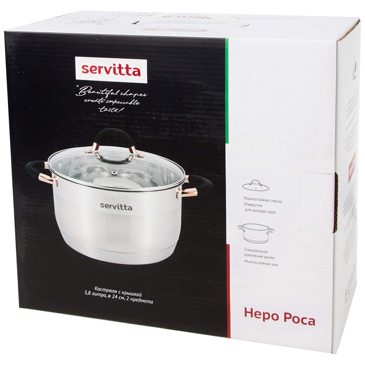 Кастрюля с крышкой Servitta Nero rosa Sr0125