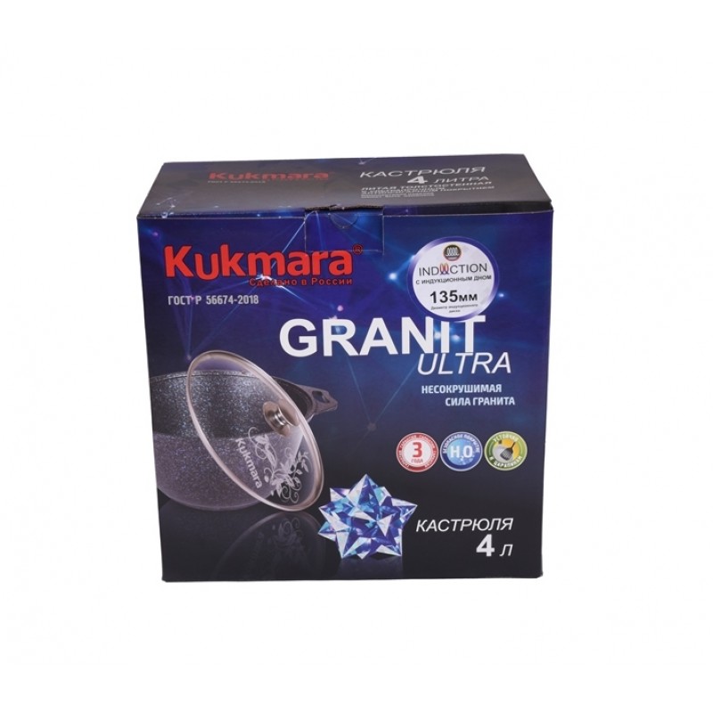 Кастрюля KUKMARA Кгои42а а/пр литая 4,0л стекл/кр Granit ultra original индукция