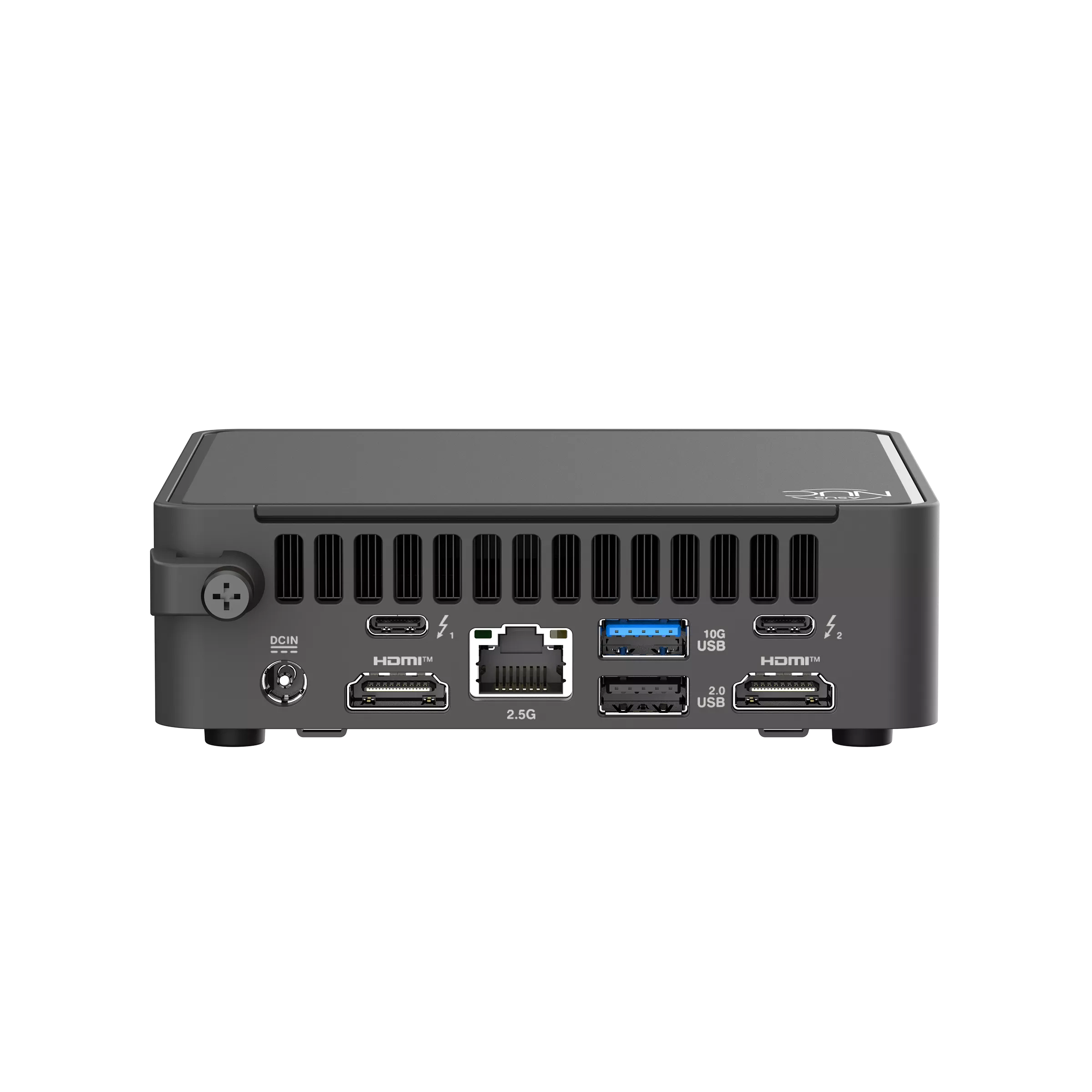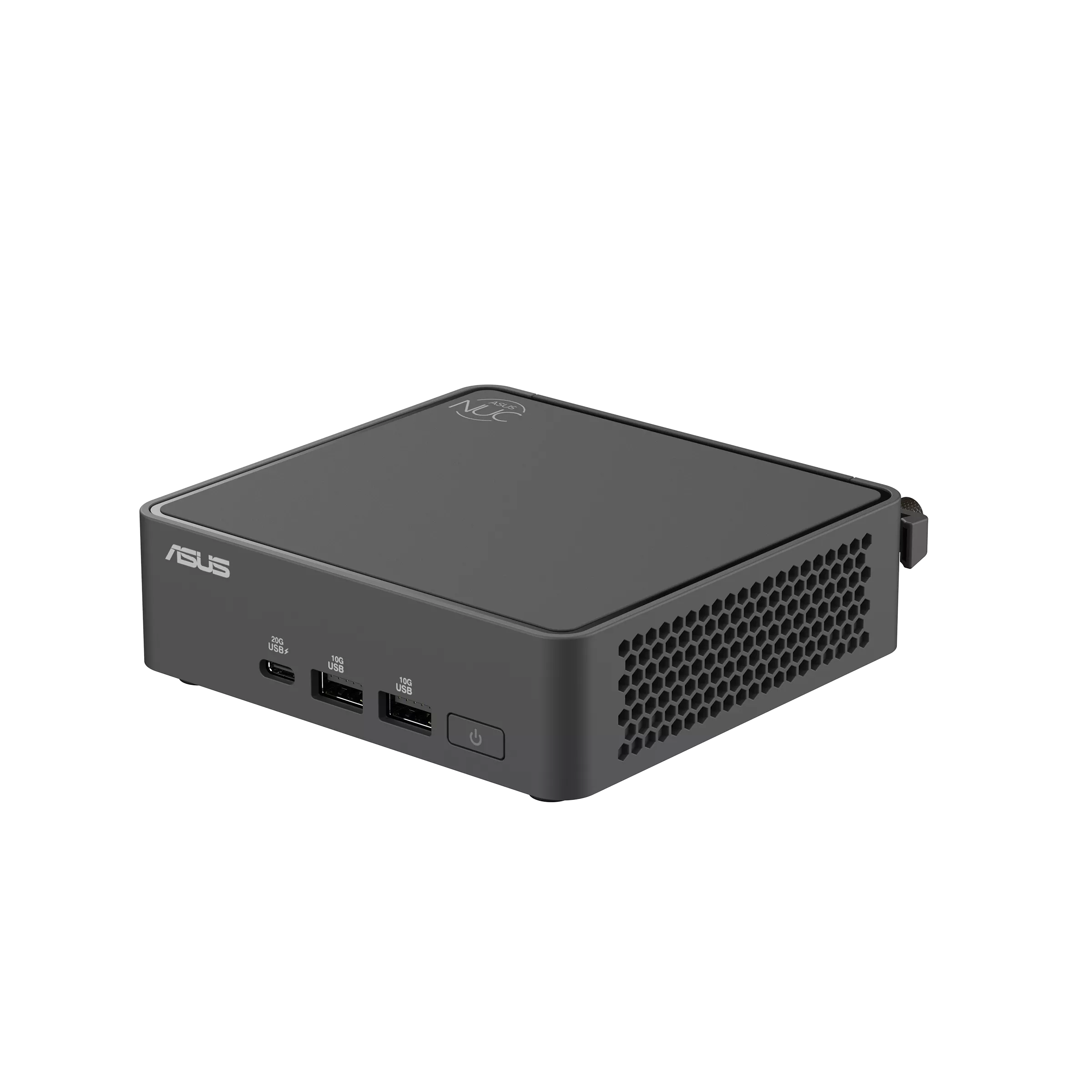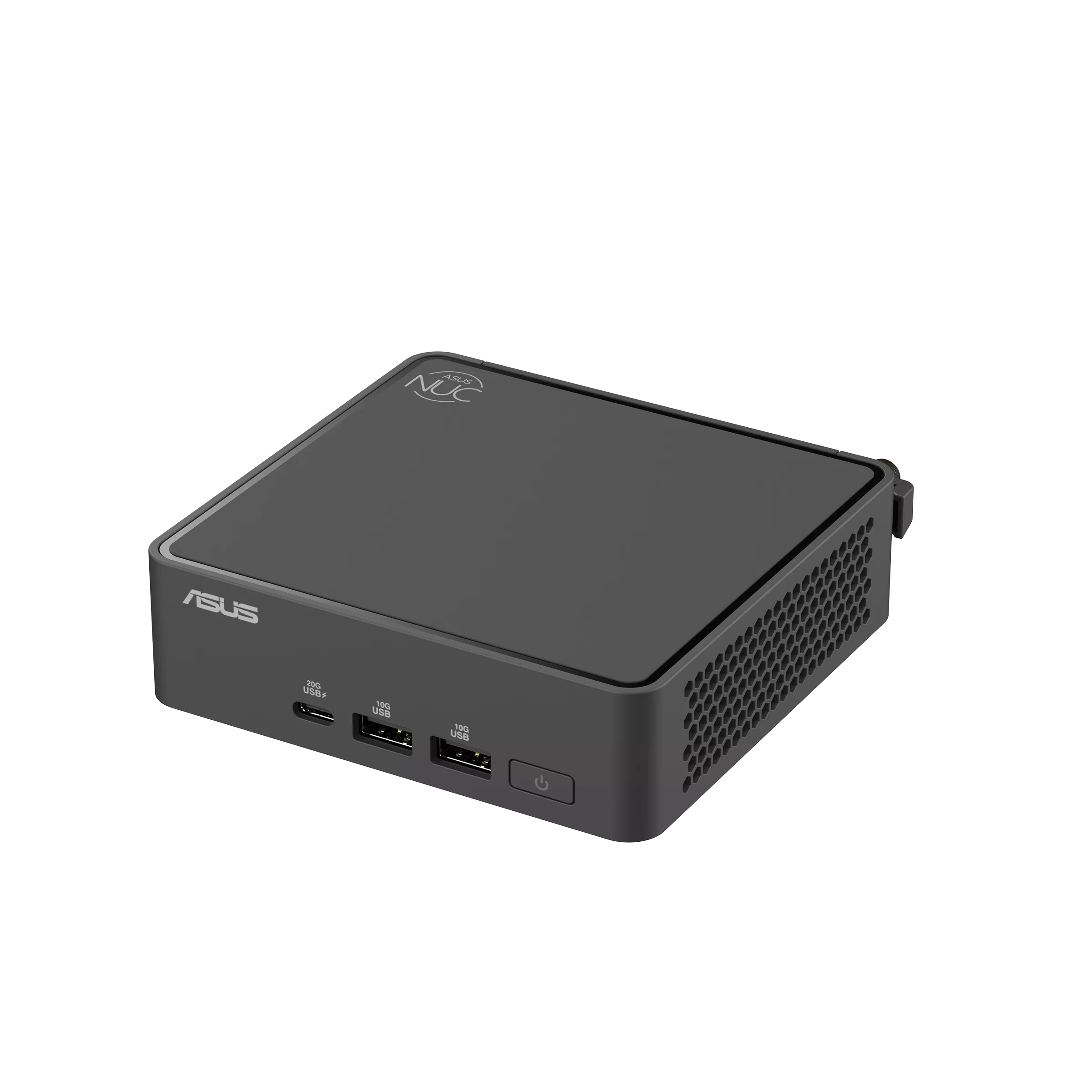ASUS NUC 15CRK представляет собой компактное компьютерное решение в формате неттопа, сочетающее в себе высокую производительность и минималистичный дизайн. Устройство поставляется в черном цвете с фирменным логотипом ASUS, что делает его стильным дополнением любого рабочего пространства.