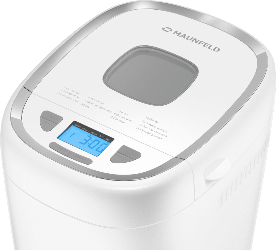 • Основные программы цельнозерновой хлеб,поддержание температуры,французский хлеб,кекс,джем,безглютеновая выпечка,ускоренная выпечка,замес теста