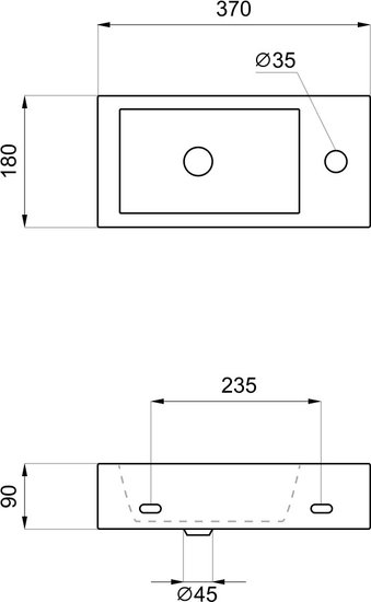 • Отверстие под смеситель 1