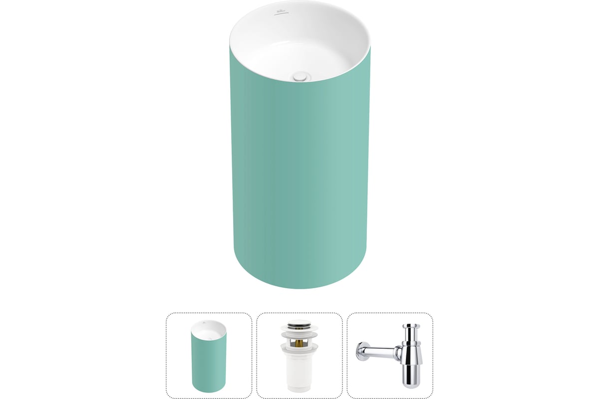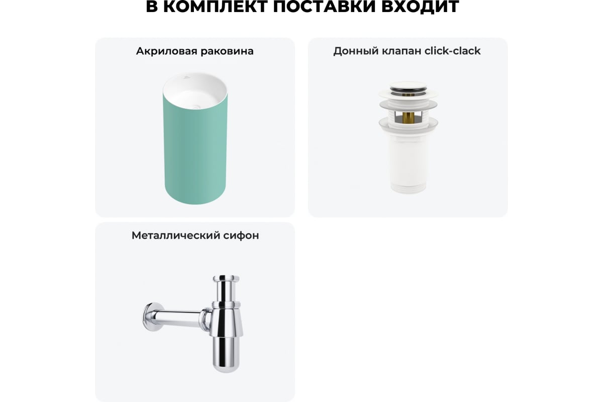 Напольная раковина отдельностоящая Wellsee Chalice Perfection в наборе 3 в 1, раковина-моноблок из акрила, цвет матовый светло-зеленый / белый глянец 20212952R