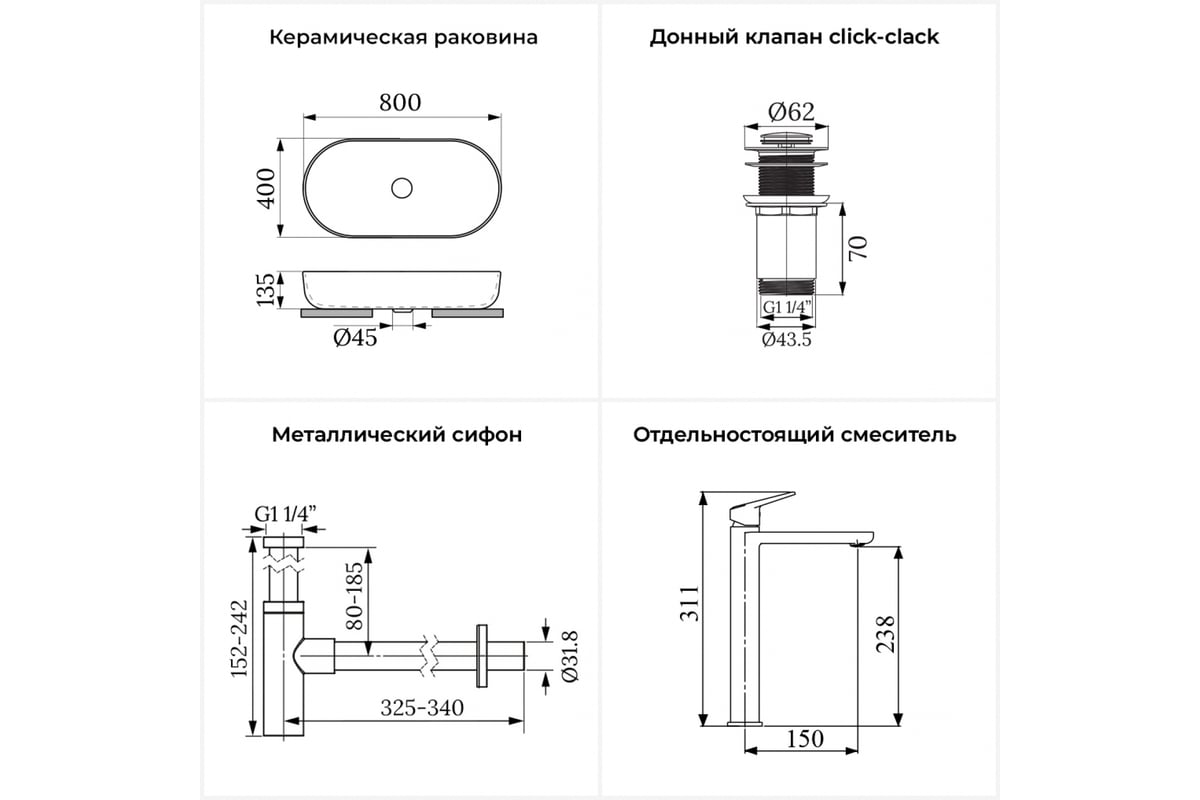 Накладная раковина для ванной комнаты Wellsee Chic Riviera в наборе 4 в 1 20214778R