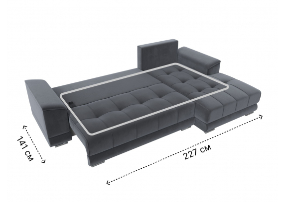 При габаритах: 284x93х190 см подойдет для большой семьи или дружной компании, легко раскладывается, обеспечивая спальное место 141x227 см.