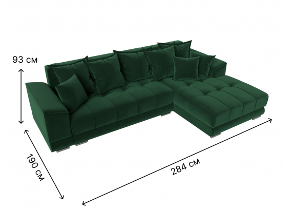 Диван угловой НордСтар правый угол Велюр Зеленый