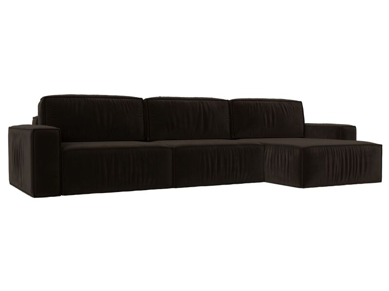 Диван угловой Прага Классик лонг правый угол Микровельвет Коричневый