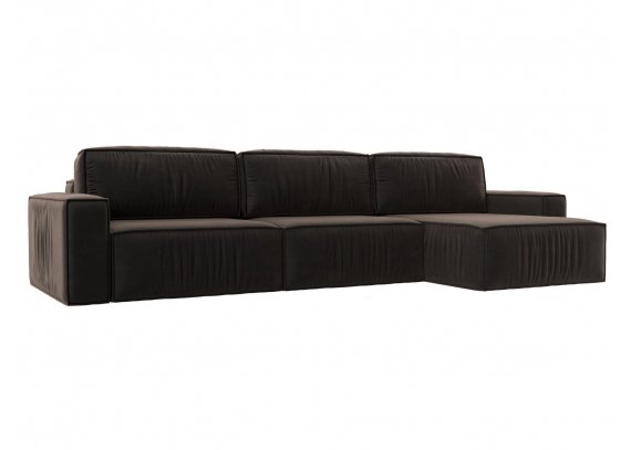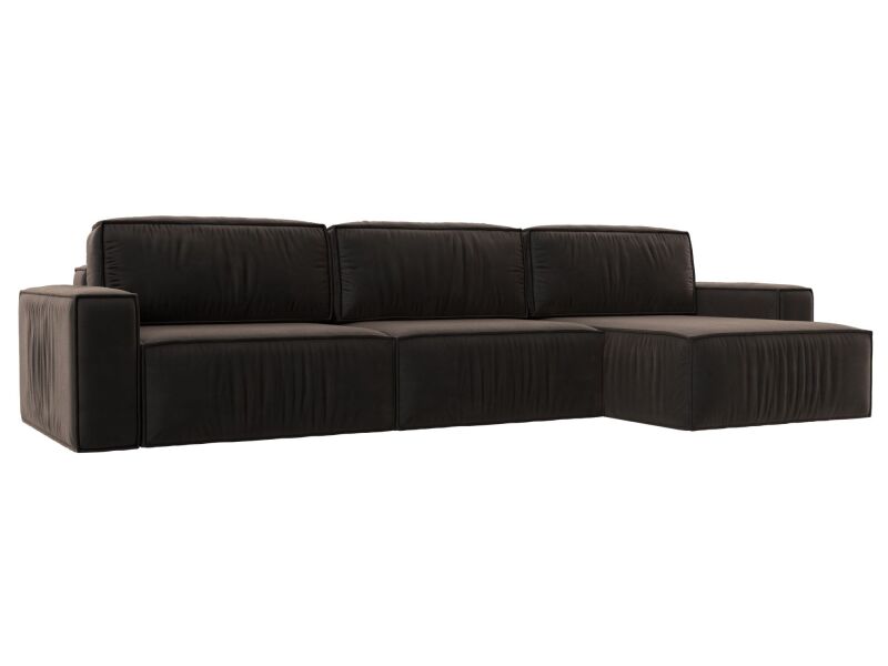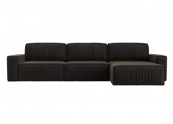 Диван угловой Прага Классик лонг правый угол Велюр Коричневый