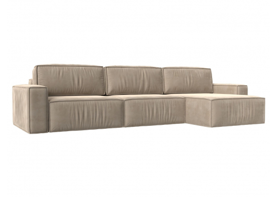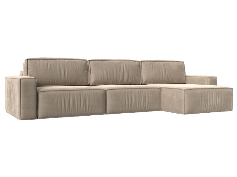 Диван угловой Прага Классик лонг правый угол Велюр Бежевый