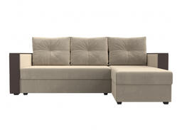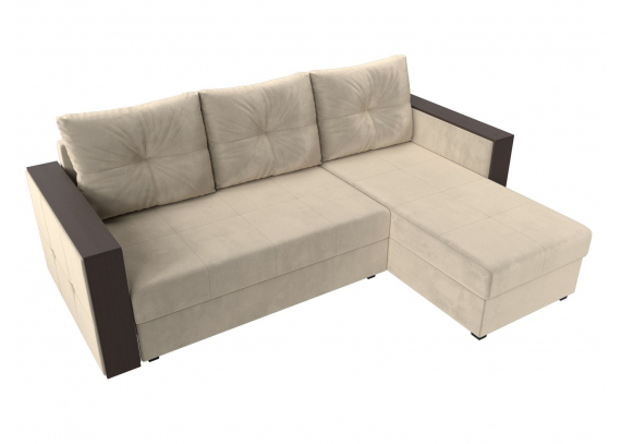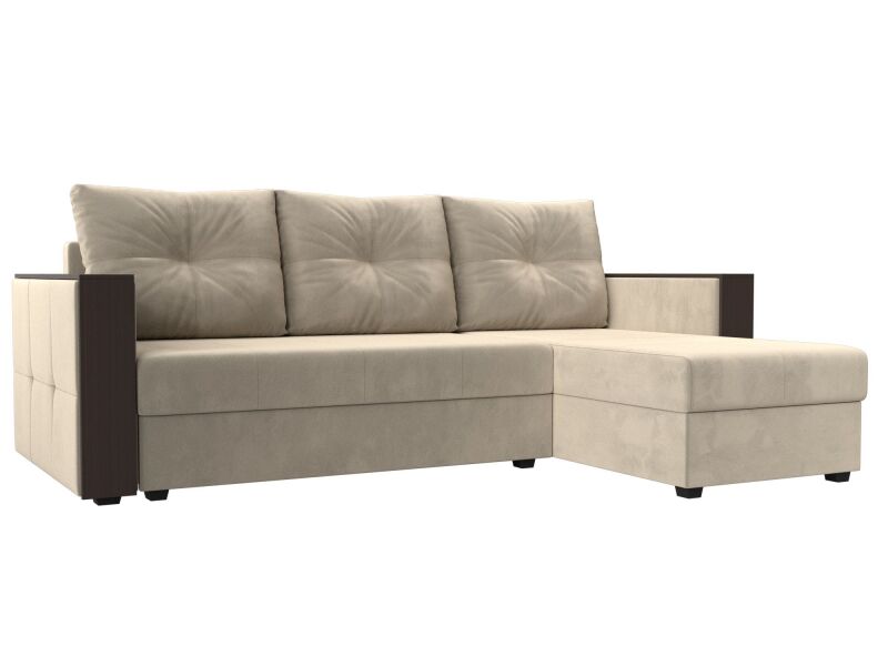 Диван угловой Валенсия Лайт правый угол Микровельвет Бежевый