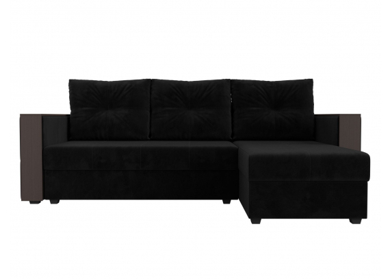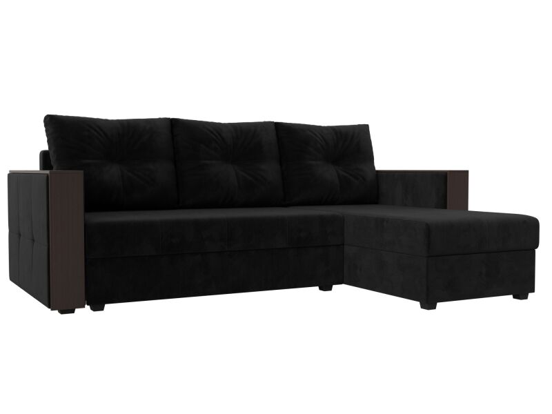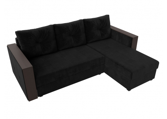 Диван угловой Валенсия Лайт правый угол Велюр Черный