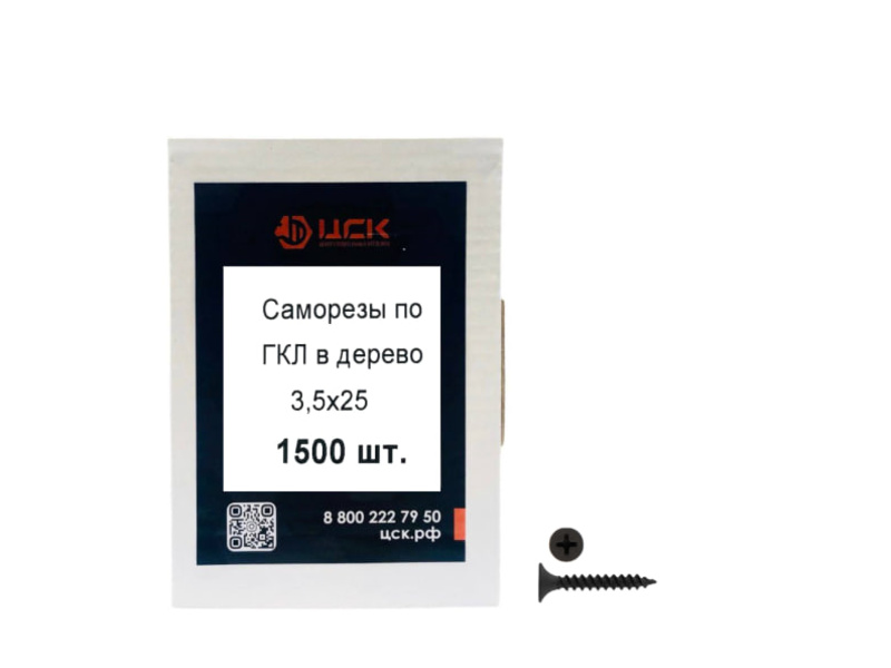Саморезы по ГКЛ в дерево чёрные 3,5x25, 1500 шт.