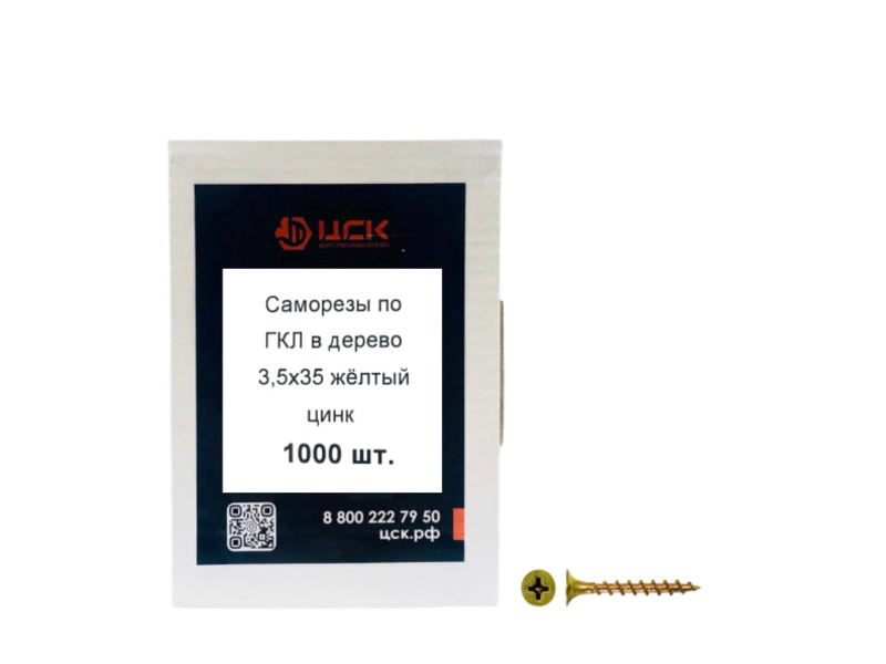 Саморезы по ГКЛ в дерево 3,5x35 жёлтый цинк, 1000 шт