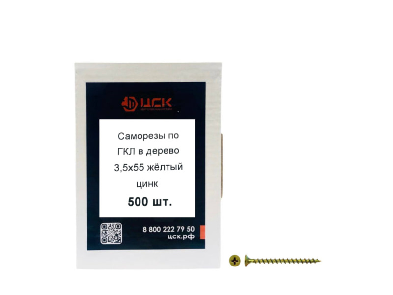 Саморезы по ГКЛ в дерево 3,5x55 жёлтый цинк, 500 шт