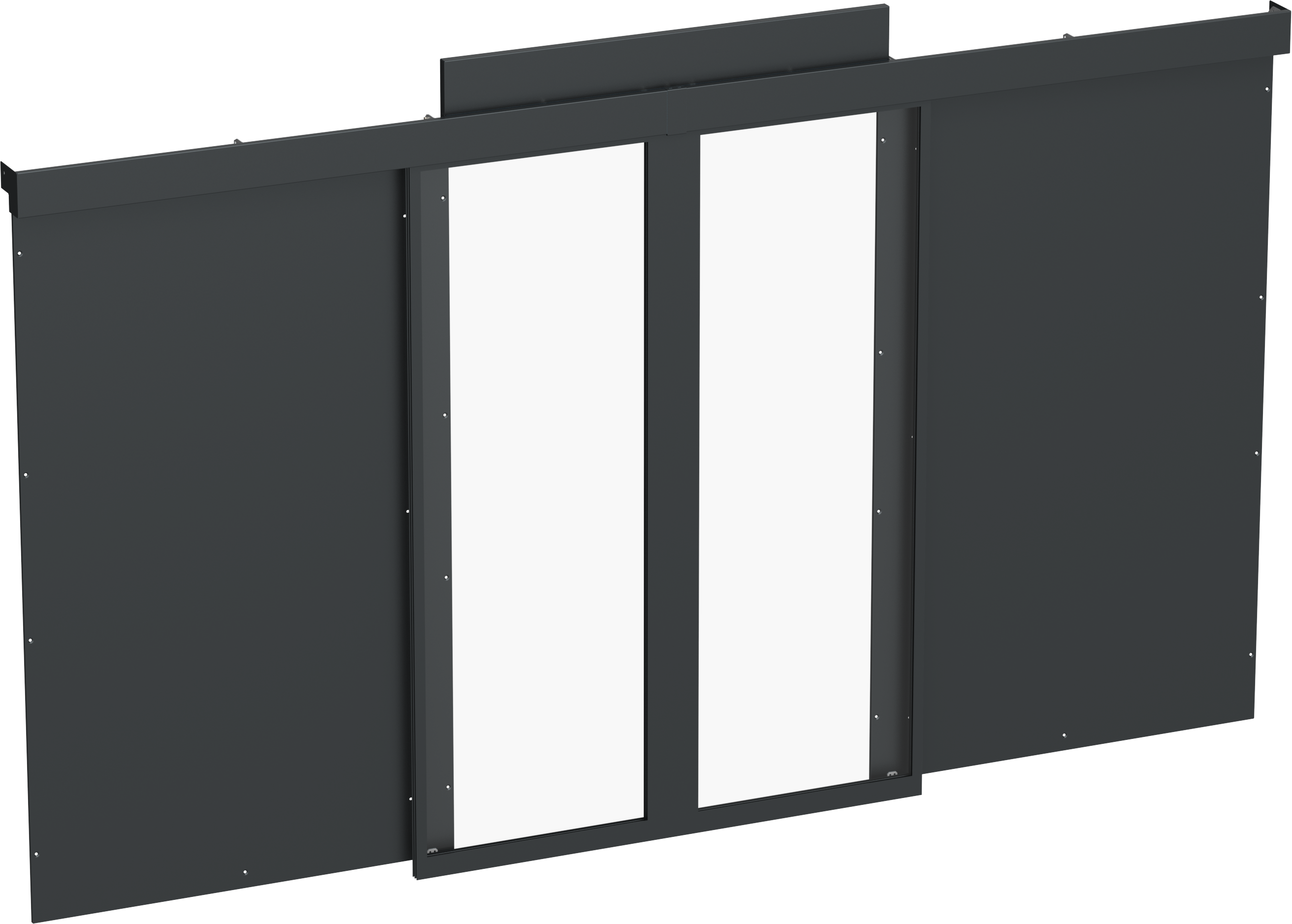 Комплект раздвижных дверей предназначен для организации изолированного коридора на базе шкафов ITK by ZPAS высотой 42U и глубиной 1000 мм, установленных непосредственно на пол без применения регулируемых опор либо цоколя.