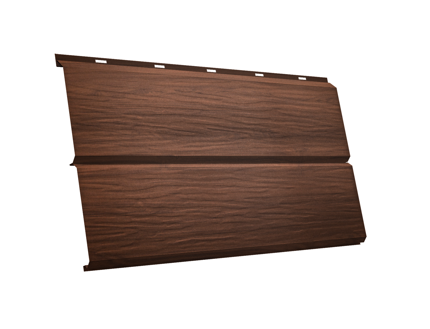 ЭкоБрус new 3D — металлический сайдинг с яркой, объемной фактурой дерева.
