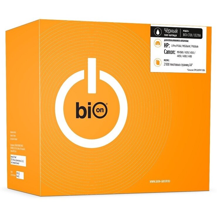 Картридж Bion BCR-C728/CE278A для HP LaserJet Pro P1566/P1606dn/M1536dnf; Canon i-SENSYS MF4430/MF4450/MF4570/MF4580/MF4410/FAX-L150/FAX-L170/MF455