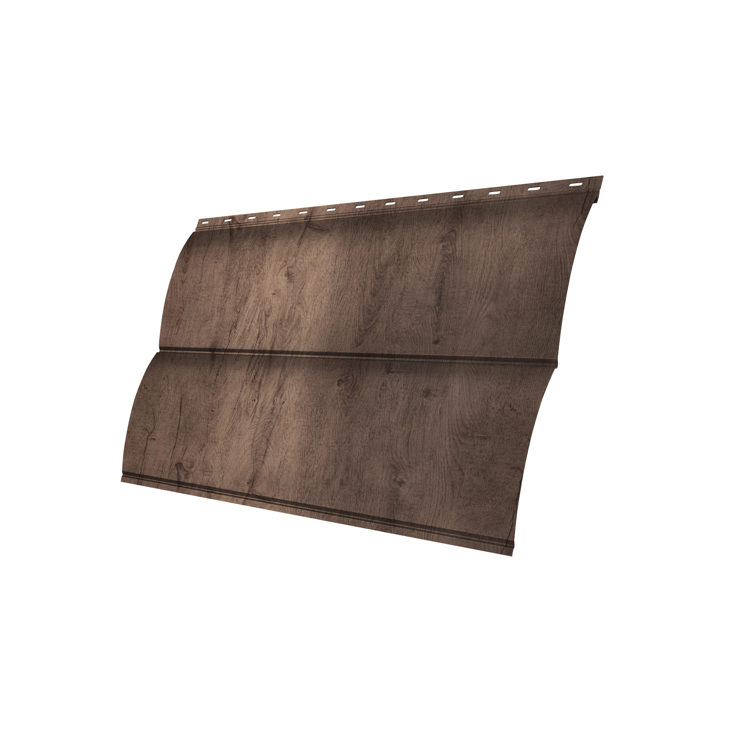 Сайдинг Блок-хаус new — облицовочный материал, предназначенный как для жилых, так и для промышленных объектов. Геометрия панелей повторяет форму бревна. В сочетании с полимерным покрытием Print металлический сайдинг «Блок-хаус» имитирует деревянный фасад.
