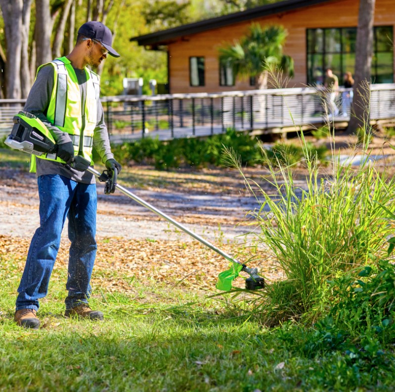 Триммер аккумуляторный Greenworks 82В ST161SK8 – мощный профессиональный инструмент для ухода за участками среднего и большого размера. Идеален для работы в местах, где шум бензинового двигателя не уместен: на территориях у жилых домов, учреждений, в парках. Подойдет и для большого загородного хозяйства. Является полноценной заменой бензиновому инструменту.